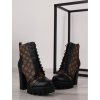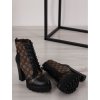 Členkové čižmy na vysokom podpätku. Celková výška topánky je 26 cm. Táto zimná dámska obuv je vhodne kombinovateľná s rôznymi druhmi outfitov ako sukne, šaty, skinny rifle alebo 7/8 nohavice. Topánky sa zapínajú na zips a sú zateplené. Voľbou týchto topánok, získate do svojho botníka obuv na viac sezón.