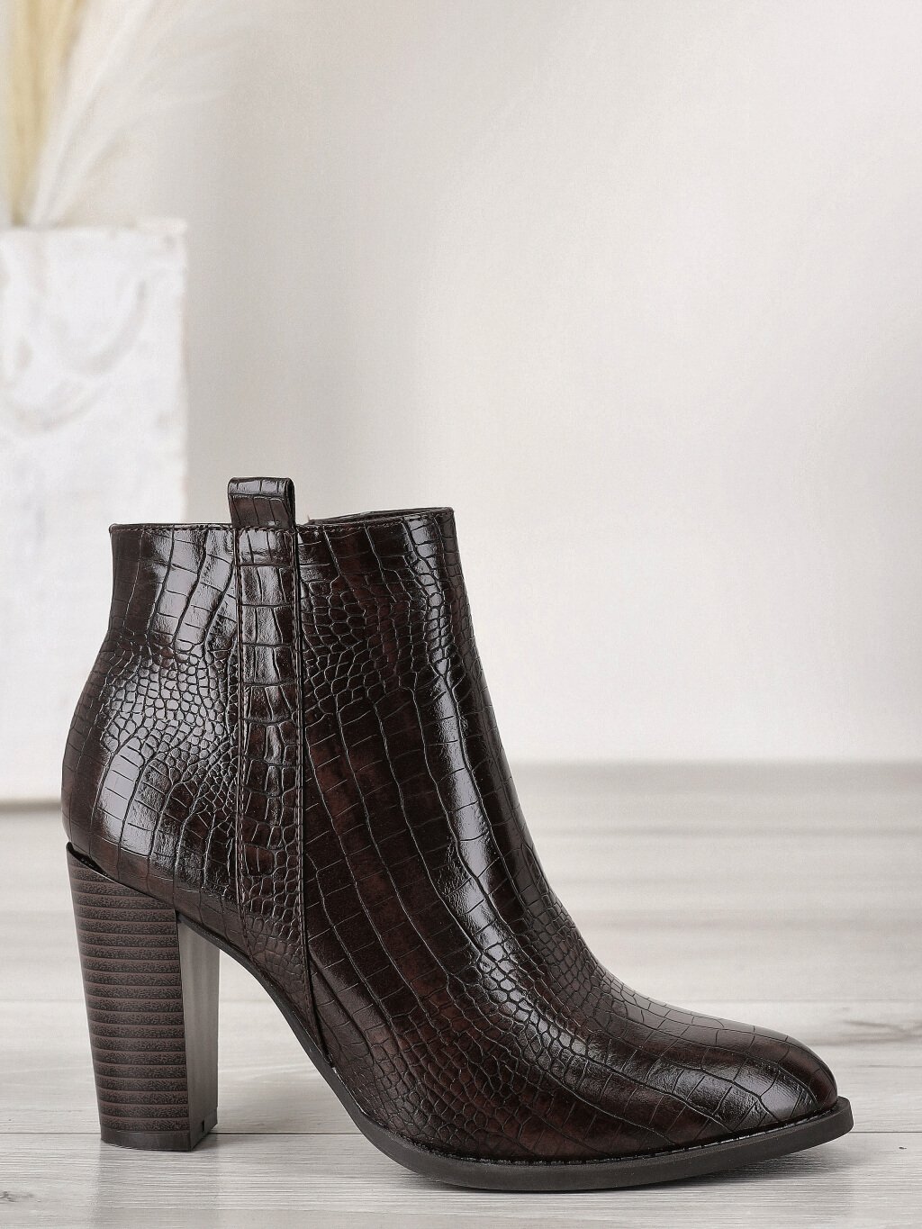 Členkové čižmy na stabilnom podpätku. Celková výška topánky je 20 cm. Táto zimná dámska obuv je vhodne kombinovateľná s rôznymi druhmi outfitov ako sukne, šaty, skinny rifle alebo 7/8 nohavice. Topánky sa zapínajú na zips a sú zateplené. Voľbou týchto topánok, získate do svojho botníka obuv na viac sezón.