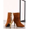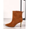 Hnedé semišové čizmy na tenkom podpätku RB68