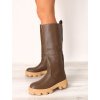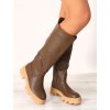 Zeleno hnedé dámske vysoké čižmy QT21