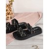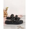 Čierne dámske šľapky na platforme, s prepletanými remienkami, ozdobené zlatou retiazkou. Mäkká vnútorna prešívaná stielka pre maximálny komfort a pohodlie. Odľahčené módne dámske platformy na leto.