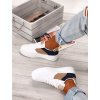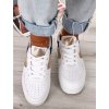 Biele tenisky z eko kože na vysokej bielej platforme. Obuv je doplnená o neutrálne farby: modrú, béžovú a zlatú. Tenisky sa viažu na šnúrky. Pohodlné a módne tenisky, ktoré je možné kombinovať s rôznymi typmi outfitou.