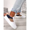 Biele tenisky na platforme s modrým doplnkom KLQS-41
