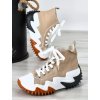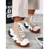 Khaki hnedé dámske látkové tenisky platformy. Zaujímavá vysoká štruktúrovaná podrážka. Tenisky sa viažu na šnúrky. Doporučujeme ku všetkým športovým módnym outfitom.