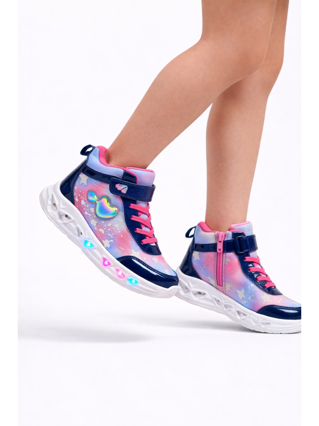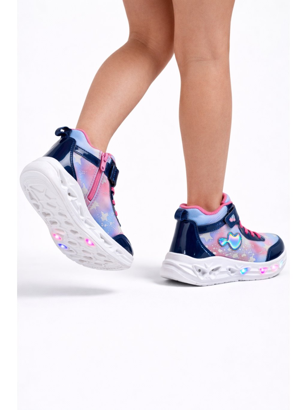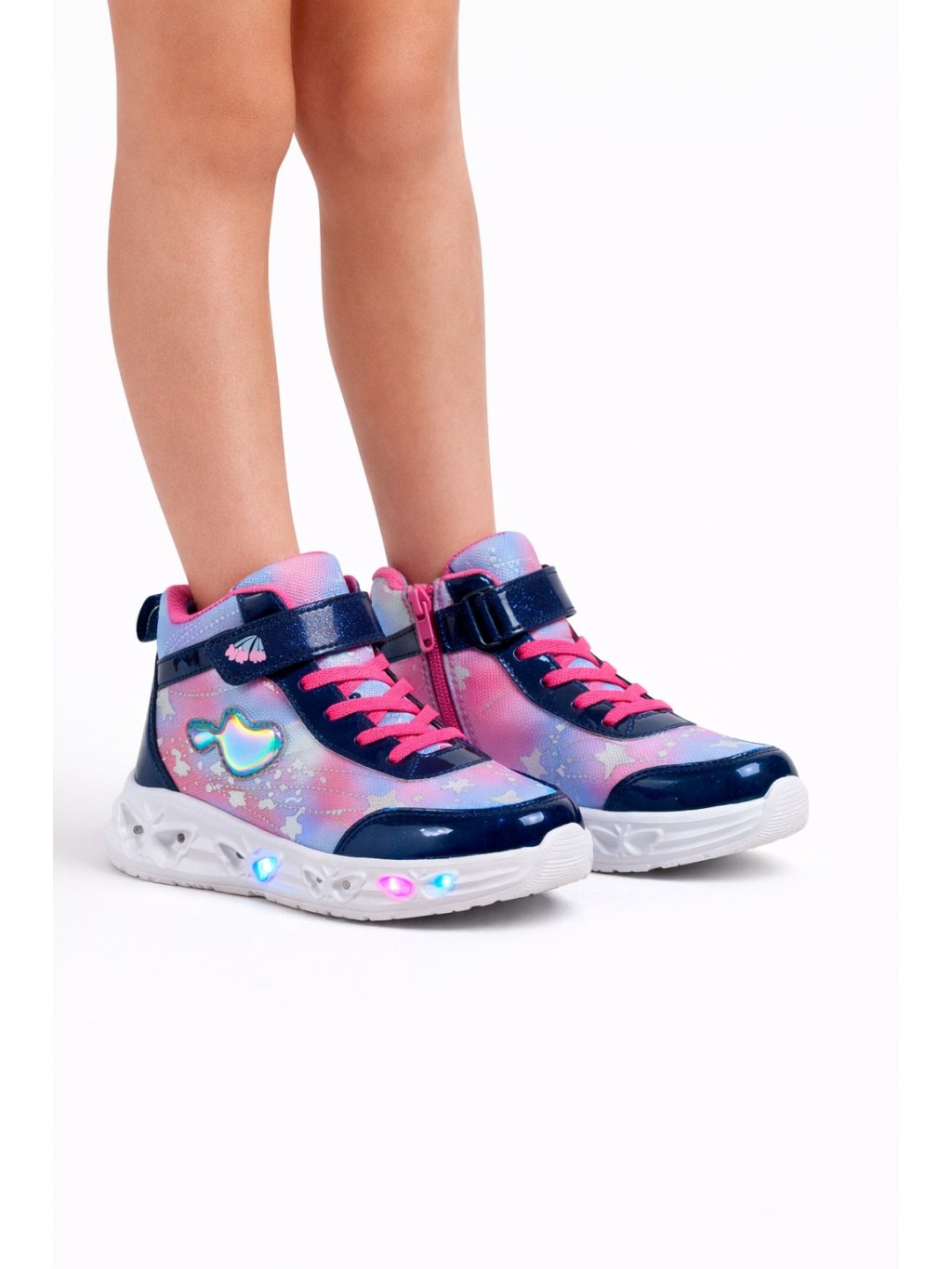 Dievčenské členkové kožené tenisky na suchý zips s led svetlami.