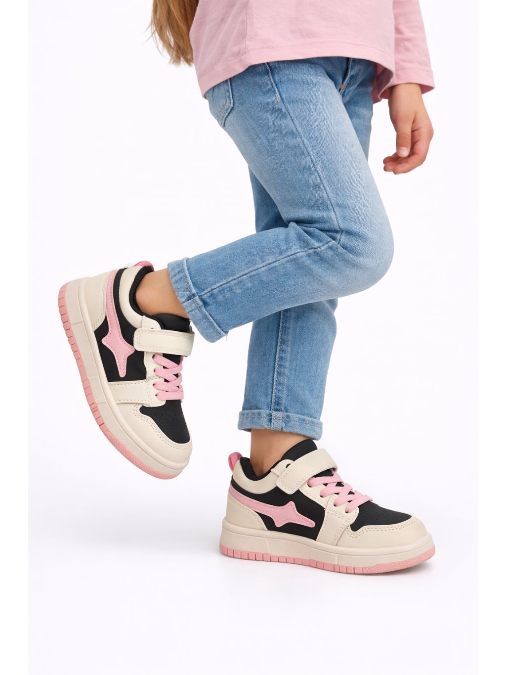 Dievčenské ružovo-béžové tenisky z eko kože so športovým dizajnom....