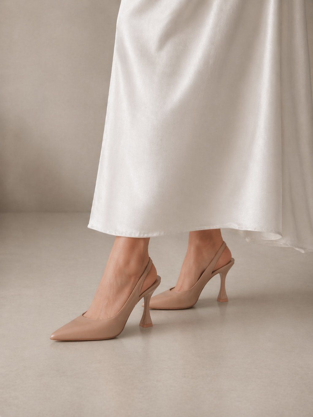 Béžové lodičky s otvorenou pätou zaujmú výrazne ženským dizajnom, ktorý podčiarkuje elegantná špicatá špička a zaujímavý podpätok. Čisté línie a nadčasové prevedenie z nich robia výnimočný model, ktorý okamžite pritiahne pozornosť a pozdvihne celý outfit.
