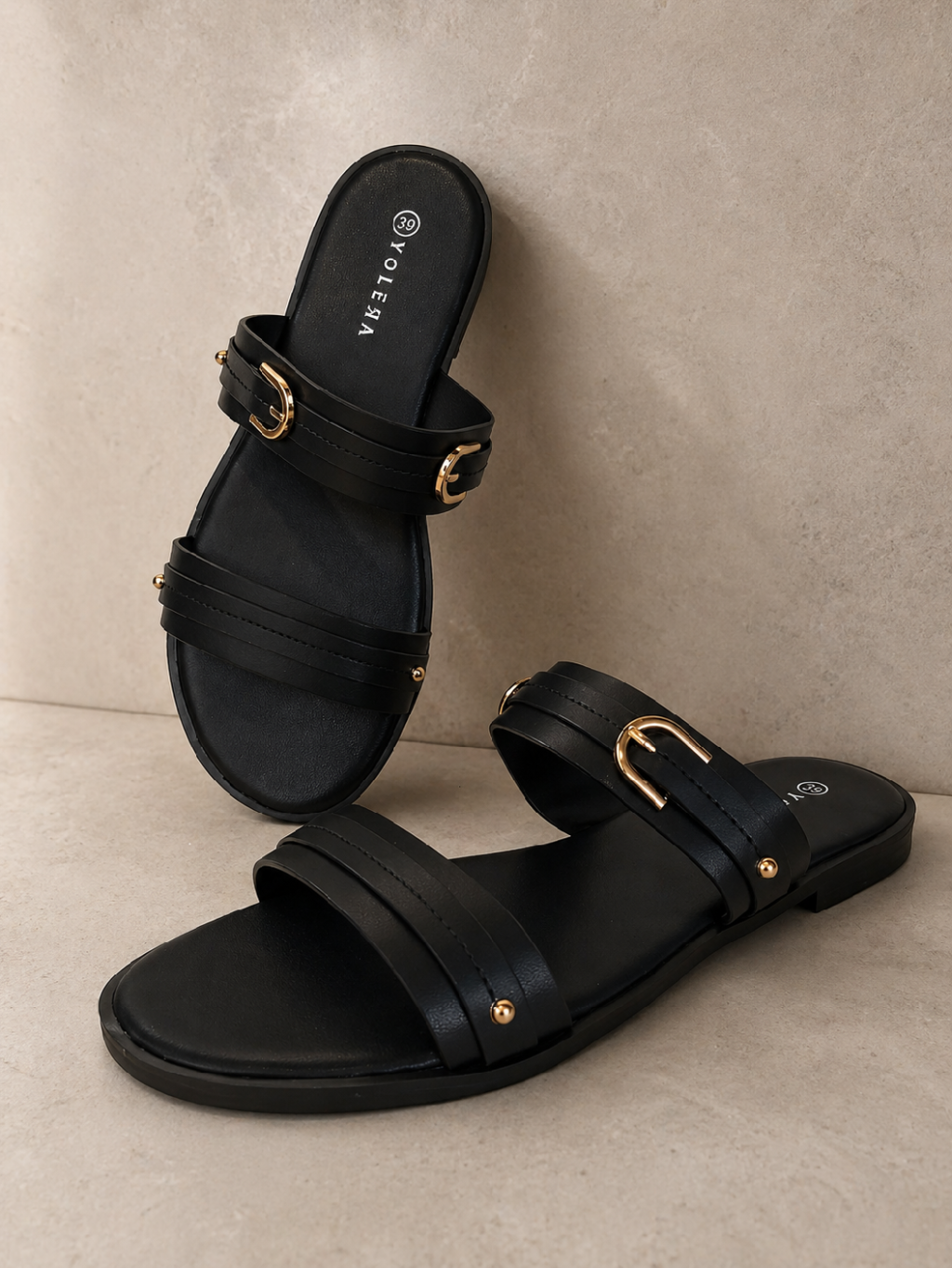 ZLATÝ DETAIL: Jemné zlaté doplnky dodávajú šľapkám luxusný prvok, vďaka ktorému krásne doplnia bežné outfity.