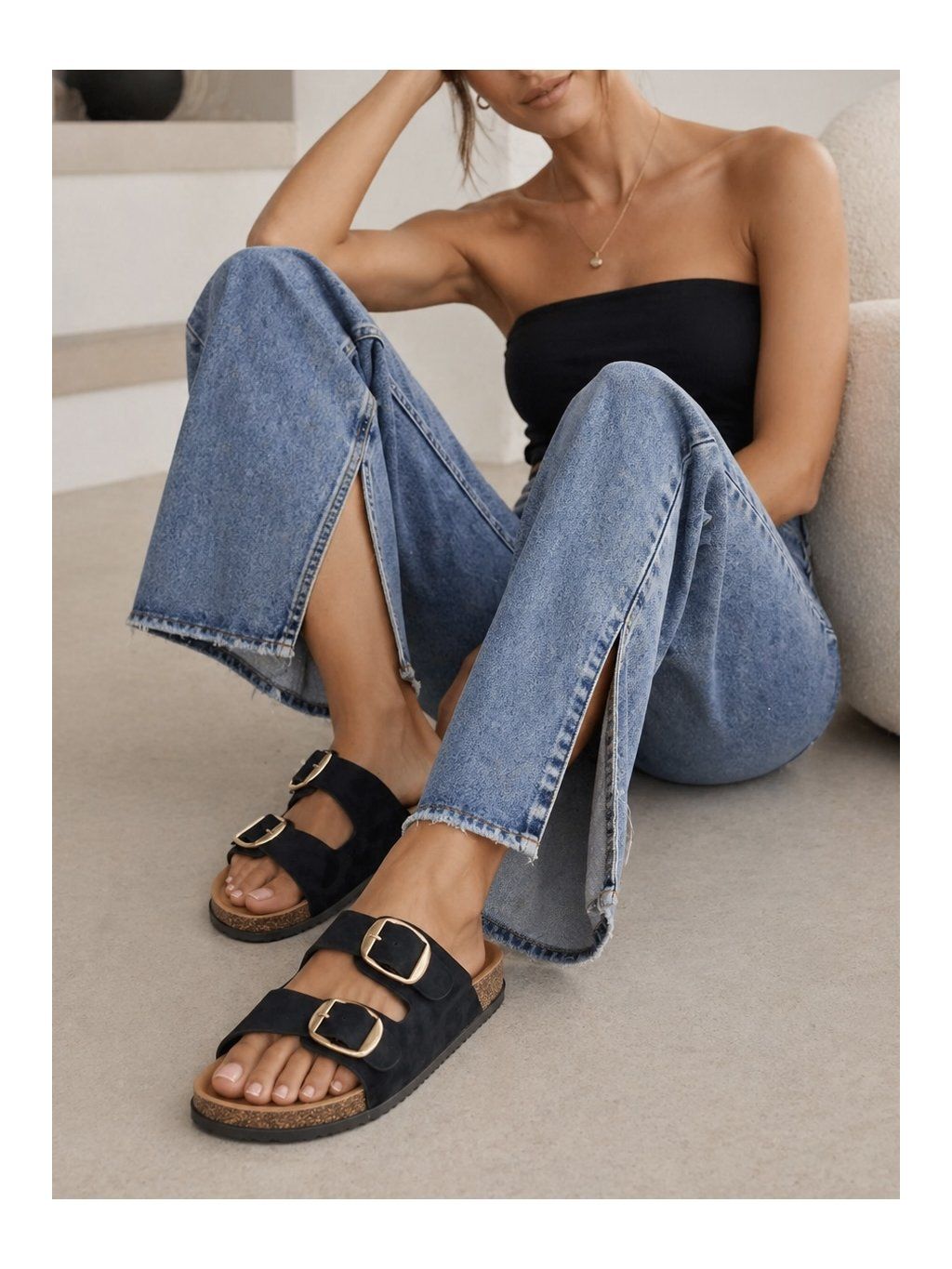 DIZAJN: Šľapky s dvomi nastaviteľnými remienkami a korkovou podrážkou. Jednoduchý a univerzálny vzhľad.